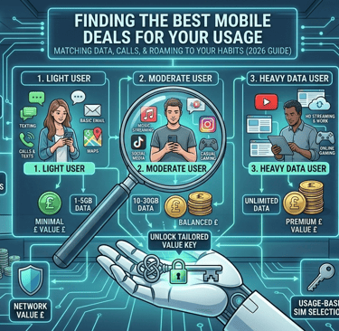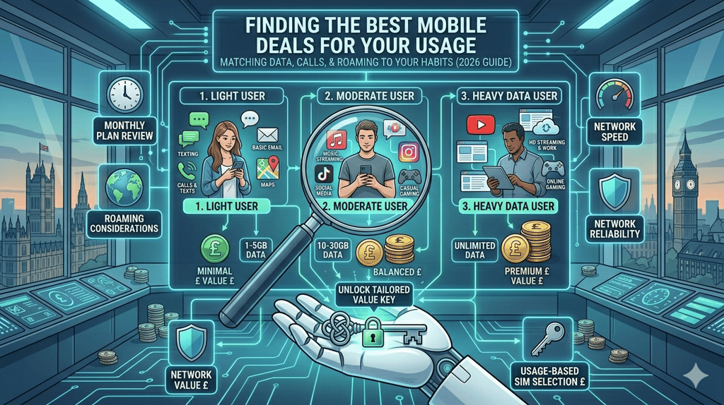To find the best mobile deals, start by understanding your data, calls, and text usage. Then use a mobile plan comparison UK tool to match your needs with the most suitable plan.